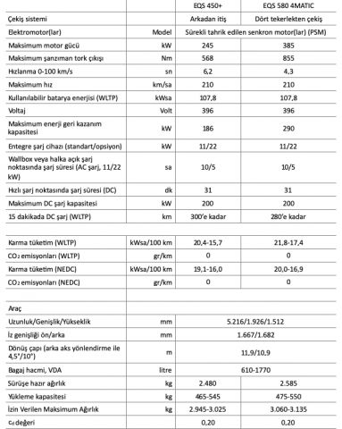 “Yolların "0'dan elektrikli" hazırlanan ilk büyük lüks sedanı, 770 km menzilli arkadan itişli EQS 450+ 245kW 333HP 568Nm ve EQS 580 4matic 385kW 524HP 855Nm ile #eATS sistemi enerjisini 107,8kWh’lik bataryasından çekecek... 200kW ile şarj etme imkanı, 15 dakikada 300km ekstra menzil, 22kW AC ev şarj imkanının yanında 396V’la çalışan EQS580 4,3 saniyede 100’e çıkıyor.”