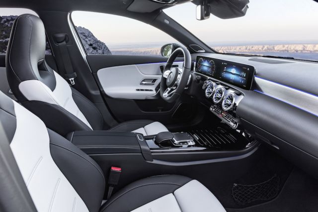 Mercedes-Benz, tamamen yeni bir alan hissi ile kompakt sınıfta bir iç mekân devrimi yaparak yeni A-Serisi’nin iç mekân tasarımı ile lüks ve modern kavramlarını yeniden tanımlıyor. Devrim niteliğindeki iç mekân mimarisine yenilikçi ön konsol ve gösterge paneli yaklaşımı damgasını vuruyor. Mercedes-Benz bir ilke imza atıyor ve gösterge panelinde bir siperliğe yer vermiyor. Böylece gösterge panelinin ana gövdesinin çizgisi kesintiye uğramadan bir kapıdan diğerine uzanıyor. Kokpiti domine eden yenilikçi geniş ekran tamamen açıkta dururken türbin görünümlü havalandırma ızgaraları sportif tasarımı destekliyor.